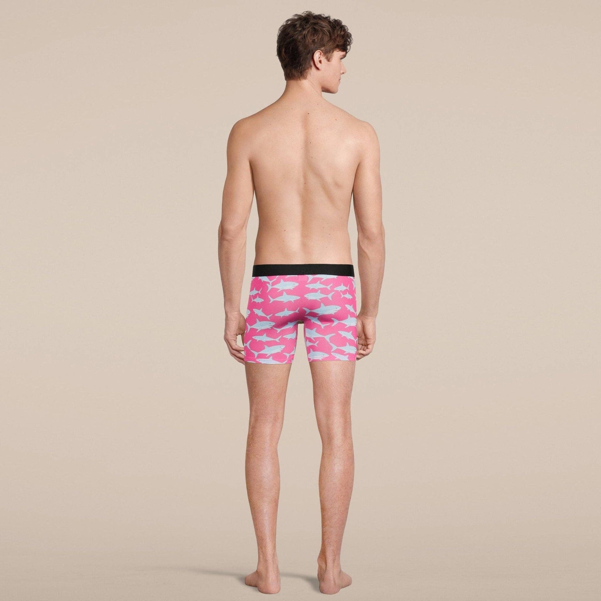 Is it a bird? Is it a plane? It’s shark underwear! The king of the ocean makes its underwear debut. These men’s boxer briefs will surely spark a conversation. 🦈 Watch out though, they bite ;) Breathable ultra-light sport mesh material, designed to keep you dry for your workouts, feel confident on your night outs and a promising conversation-starter for when needed. * FITTING - Slim fit: form-fitting comfort through the thighs and butt. Size up for a more relaxed fit. * MADE FOR - The gym, indoor training, sports activities, daily wear. * MADE WITH - Micro-dot mesh material, moisture-wicking and odor-fighting technology. * MATERIAL - Polyester (88%) and elastane (12%). * LENGTH - 5" inseam